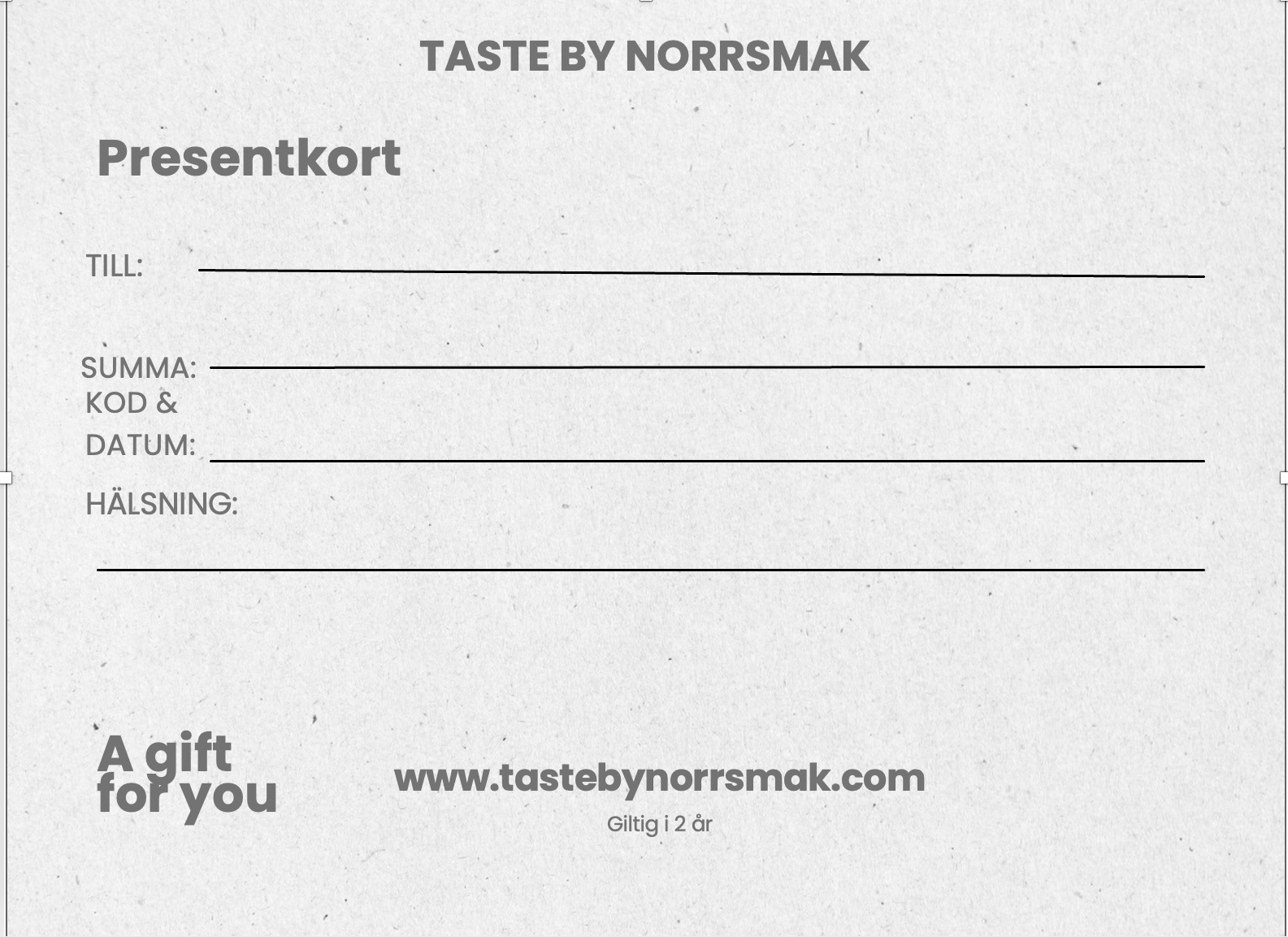 Allt serveras på en vacker smaktallrik tillsammans med utvald dryck gjorda på vilda bär. Samtidigt som du njuter av smakerna får du ta del av berättelser om den norrländska och samiska matkulturen – traditioner, råvaror och historier från norr.